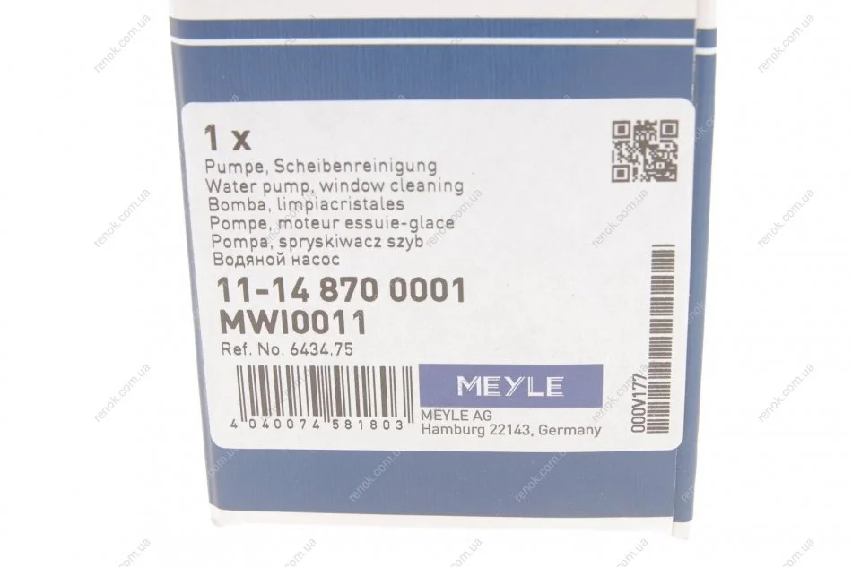 Насос омивача скла (дуальний) Renault Trafic 01- MEYLE 11-14 870 0001 (8200194414, 8200030639, 7700428386)