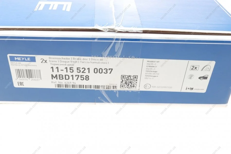 Диск гальмівний (передній) Citroen С1/Peugeot 107/Toyota Aygo 05- (247x20) MEYLE 11-15 521 0037 (424954, 4246F0, E169256)