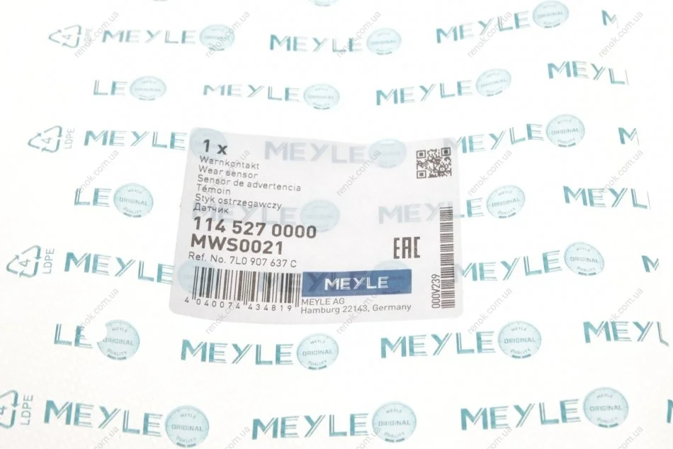 Датчик зносу гальмівних колодок (задніх) VW Touareg 02-10/ Audi Q7 06-15 MEYLE 114 527 0000 (7L0907637B, 95561236530, 95561236520)