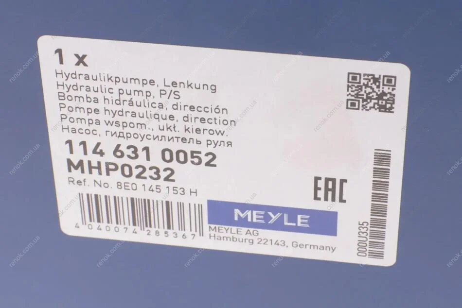 Насос гідропідсилювач керма MEYLE 114 631 0052 (8E0145153, 8E0145153H)
