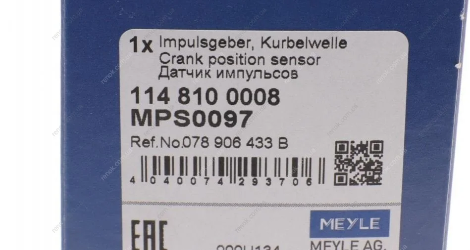 Датчик положення колінвалу Skoda Octavia 1.8T/2.0/Audi A6 2.4-3.0 95-05 MEYLE 114 810 0008