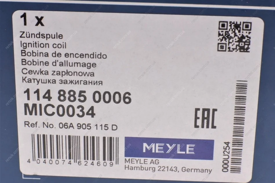 Котушка запалювання VW Golf 1.8T/Passat 1.8T/2.0 00-05 MEYLE 114 885 0006 (06A905115A, 06A905115B, 06A905115C)