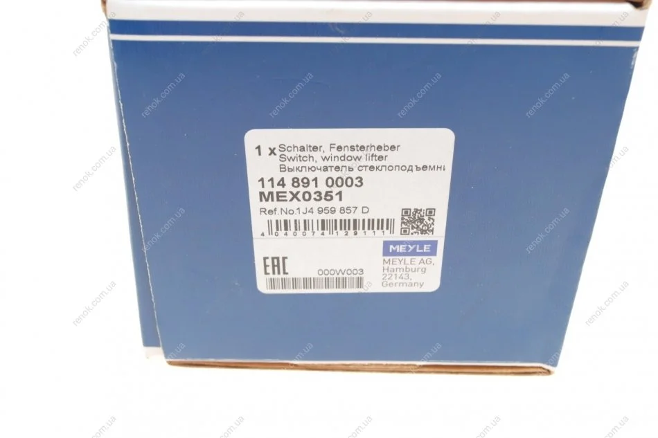 Кнопка склопідіймача VW Golf/Bora/Passat 97-05 MEYLE 114 891 0003 (1J4959857, 1J4959857B, 1J4959857D)