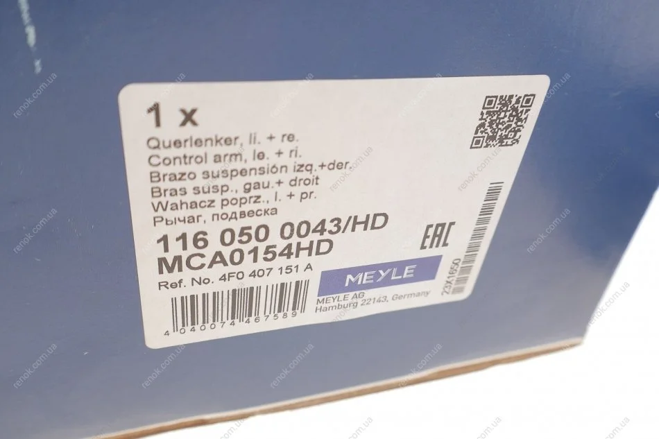 Важіль підвіски (передній/знизу/спереду) Audi A6 04-11 MEYLE 116 050 0043/HD