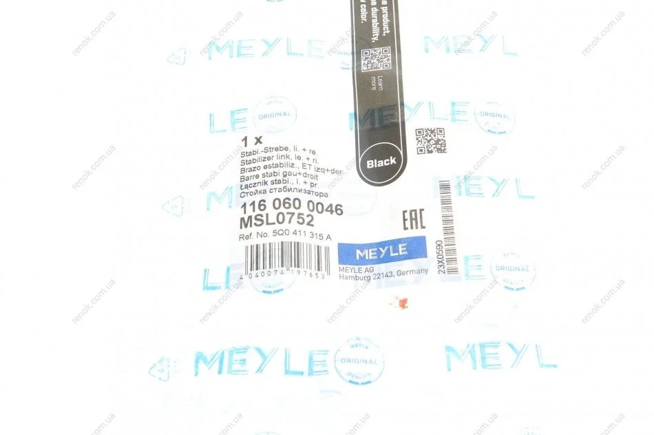 Тяга стабілізатора (переднього) Audi A3/Q3/Skoda Octavia/SuperB/VW Caddy/Passat/Tiguan/Touran 03- MEYLE 116 060 0046 (5Q0411315A, 1K0411315B, 5QM411315)