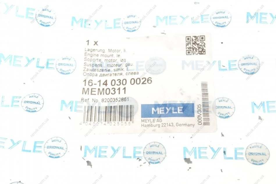 Подушка двигуна MEYLE 16-14 030 0026 (8200352861, 8200337058, 8200168073)