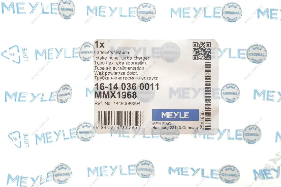 Патрубок інтеркулера MEYLE 16-14 036 0011 (144600835R, 144601524R)