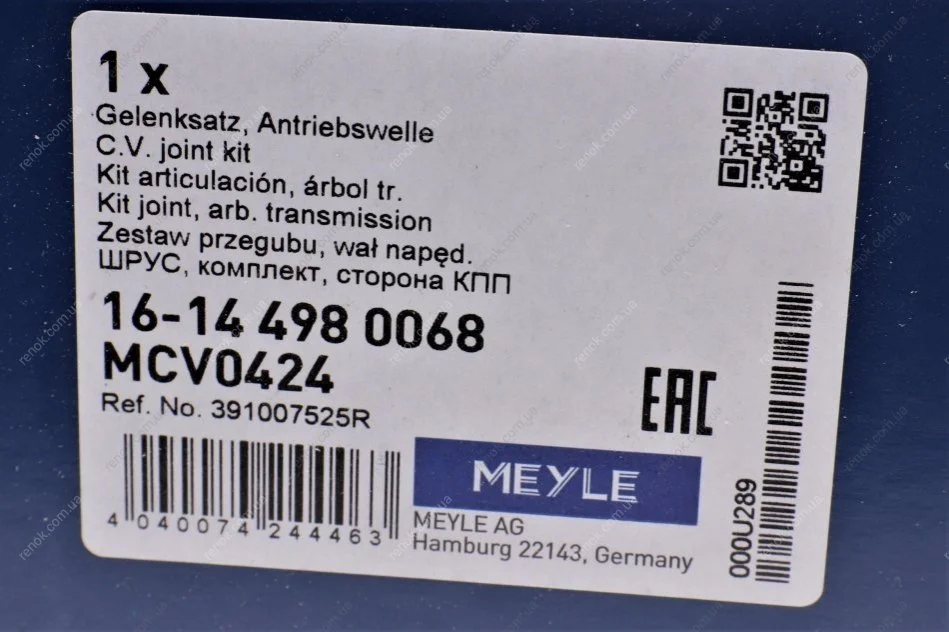 ШРКШ (зовнішній) Renault Kangoo 1.5dCi 08-/ Megane II 1.5dCi 02-09 (L=146) MEYLE 16-14 498 0068 (391001916R, 8200687740, 391007525R)