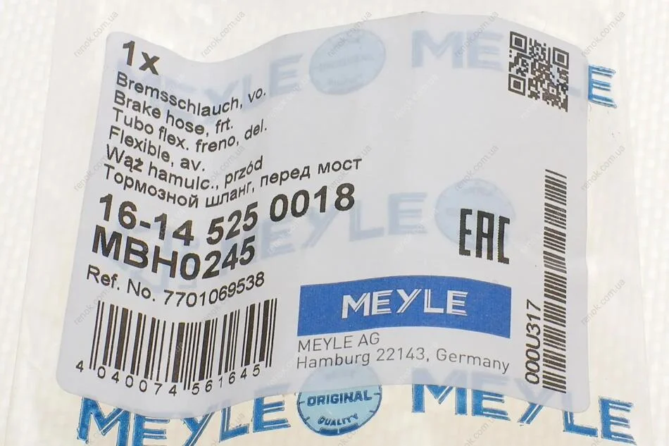 Шланг гальмівний MEYLE 16-14 525 0018 (7701069538, 7700308909, 6001551098)