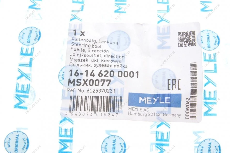Пильник рейки рульової Renault Master/Opel Movano 98- MEYLE 16-14 620 0001 (6025370231, 6001547607, 7701470361)