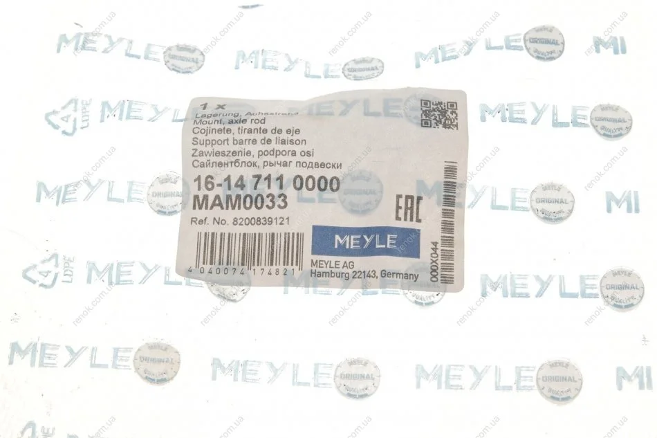 Сайлентблок важеля (заднього) Renault Duster 10- MEYLE 16-14 711 0000 (8200839121)