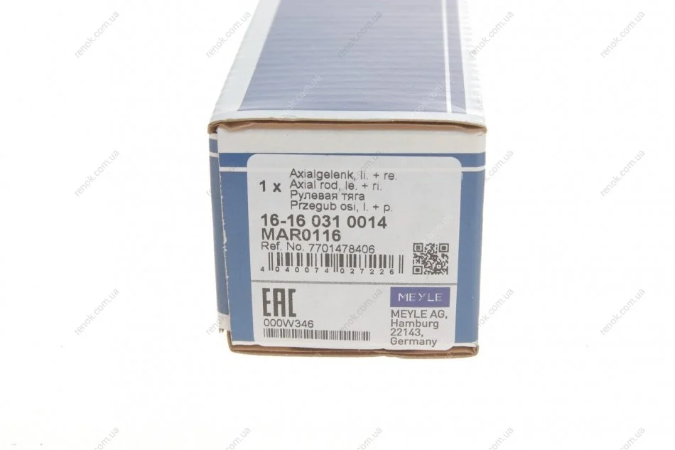 Тяга рульова Renault Kangoo/Megane III 08-/Scenic III 09-/Fluence 10-/MB Citan 12- (L=207mm) MEYLE 16-16 031 0014 (7701478406, 485215612R, A4153200089)