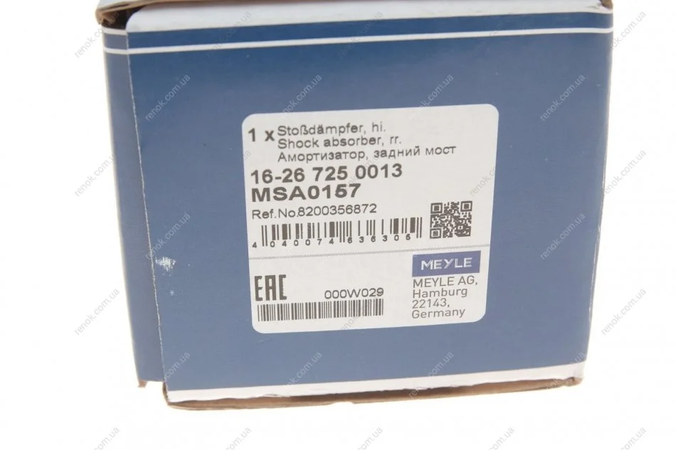 Амортизатор (задній) Renault Megane II 02- MEYLE 16-26 725 0013 (8200356872, 8200330197, 8200415734)