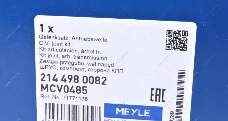 Аналоги "214 498 0082 MEYLE":