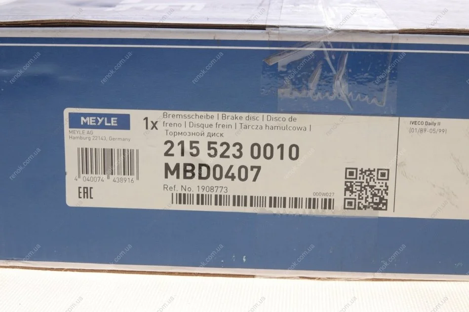 Диск гальмівний (задній) Iveco Daily 96- (289x22) (спарка) MEYLE 215 523 0010 (001908773, 01908773, 042471111)