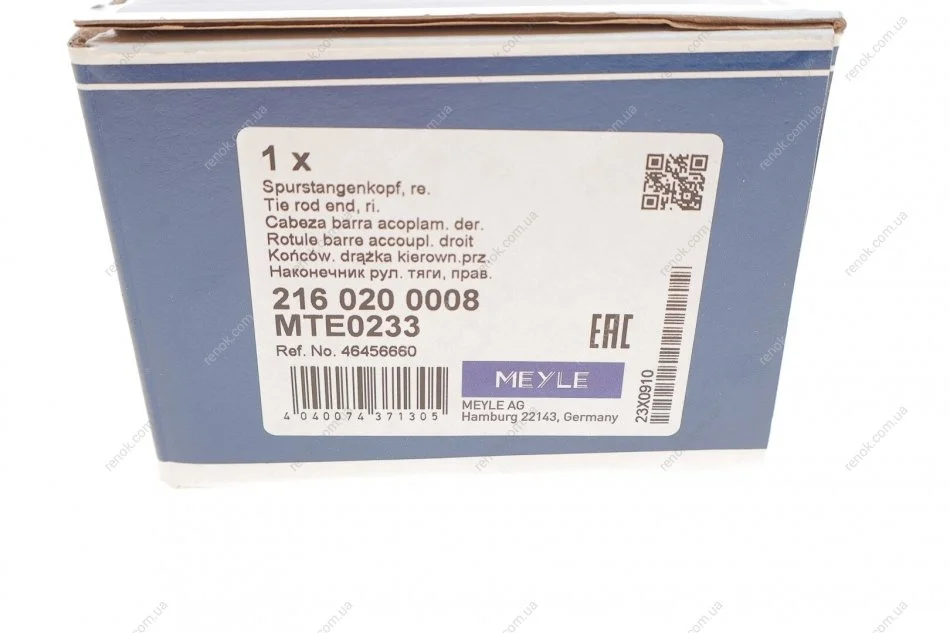Наконечник тяги рульової (R) Fiat Doblo 01- MEYLE 216 020 0008 (46745364, 46456660)