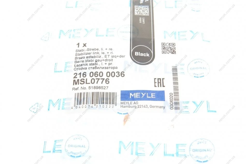 Тяга стабілізатора (переднього) Opel Combo 12-/Fiat Doblo 1.3-2.0 10- MEYLE 216 060 0036 (51848645, 51935875, 51898527)