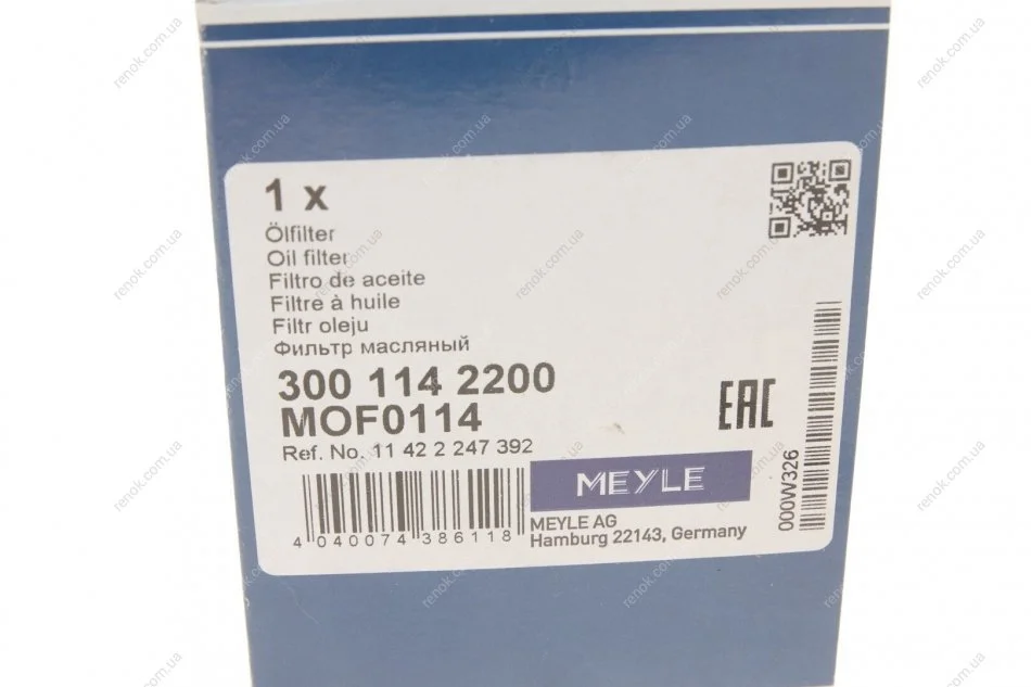 Фільтр масляний BMW 3 (E46)/ 5 (E39)/ 7 (E38) MEYLE 300 114 2200 (11422247392, 11428513375, 11428513376)