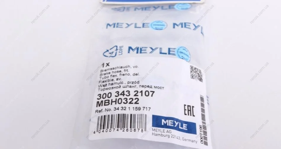 Шланг гальмівний (передній) BMW 3 (E36) 90-98 (L=453mm) MEYLE 300 343 2107 (34321159717)