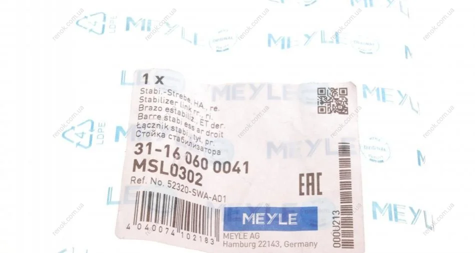 Тяга стабілізатора (заднього) (R) Honda CR-V IV 06- MEYLE 31-16 060 0041