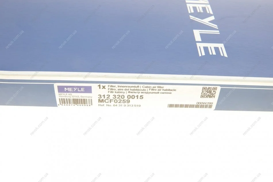 Фільтр салону BMW 3 (E90)/X1 (E84) 03- (вугільний) MEYLE 312 320 0015 (64316946549, 64316946628, 64319142115)