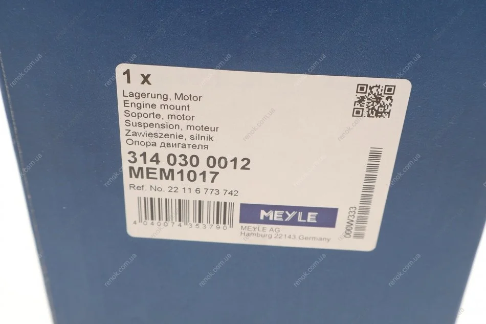 Подушка двигуна (передня) BMW 1 (E81/E88)/3 (E90/E91/E92/E93)/X1 (E84) 1.6/2.0/2.0D 04-15 N43/N45 MEYLE 314 030 0012