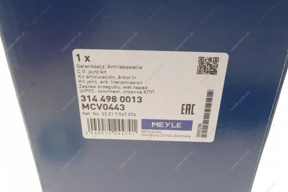 ШРКШ (зовнішній) BMW 1 (E81/E82/E87/E88)/3 (E90/E91/E92) 2.0-3.0 04-13 (27/25z) M47/N46/N47/N52 MEYLE 314 498 0013 (33217547074, 33217547075, 33217547073)