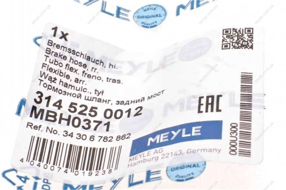 Шланг гальмівний (задній) BMW 5 Touring (E61) 04-10 (L=345mm) MEYLE 314 525 0012 (34306782862, 34326765398, 34306795676)