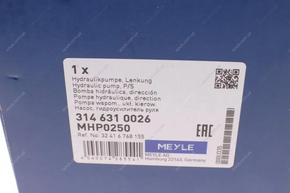Насос ГПК BMW 1 (E87)/3 (E90/E91) 2.0 D 04-11 штуцер вперед на шків MEYLE 314 631 0026 (32414029151, 32416768155)