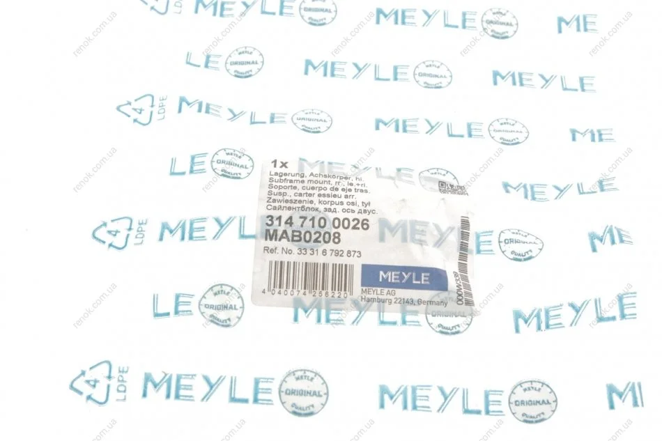Сайлентблок балки (задньої/спереду) BMW 5 (F10/F11/F07)/6 (F12/F13)/7 (F01/F02/F03/F04) 08-18 MEYLE 314 710 0026 (33316775781, 33316792873)