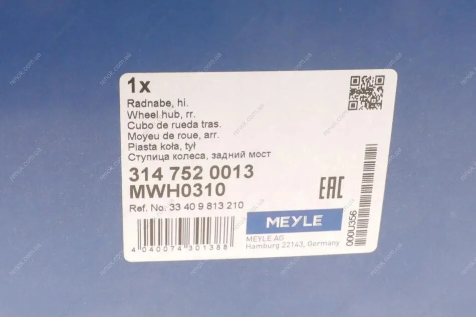 Підшипник маточини (задньої) Mini Countryman Cooper/One 10-16 MEYLE 314 752 0013 (33412444438, 33409806302, 33409813210)