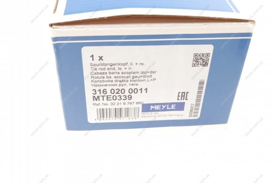 Накінечник тяги керма BMW 5 (E60) 05-10 M57/N52/N53/N54 MEYLE 316 020 0011 (32216767860)