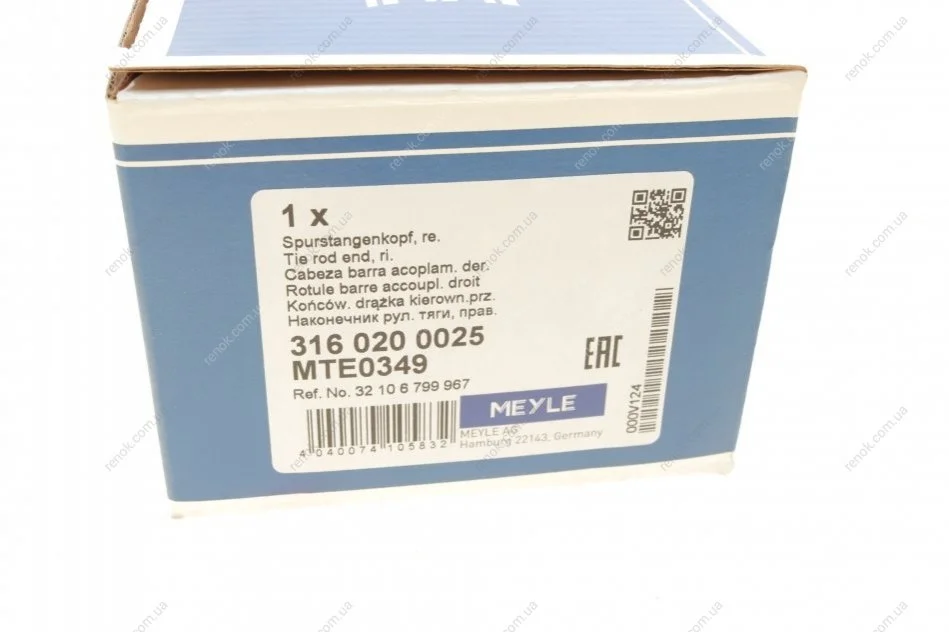 Наконечник тяги рульової (R) BMW 3 (F30/F35)/4 (F32/F33) 11- MEYLE 316 020 0025 (32106799967)