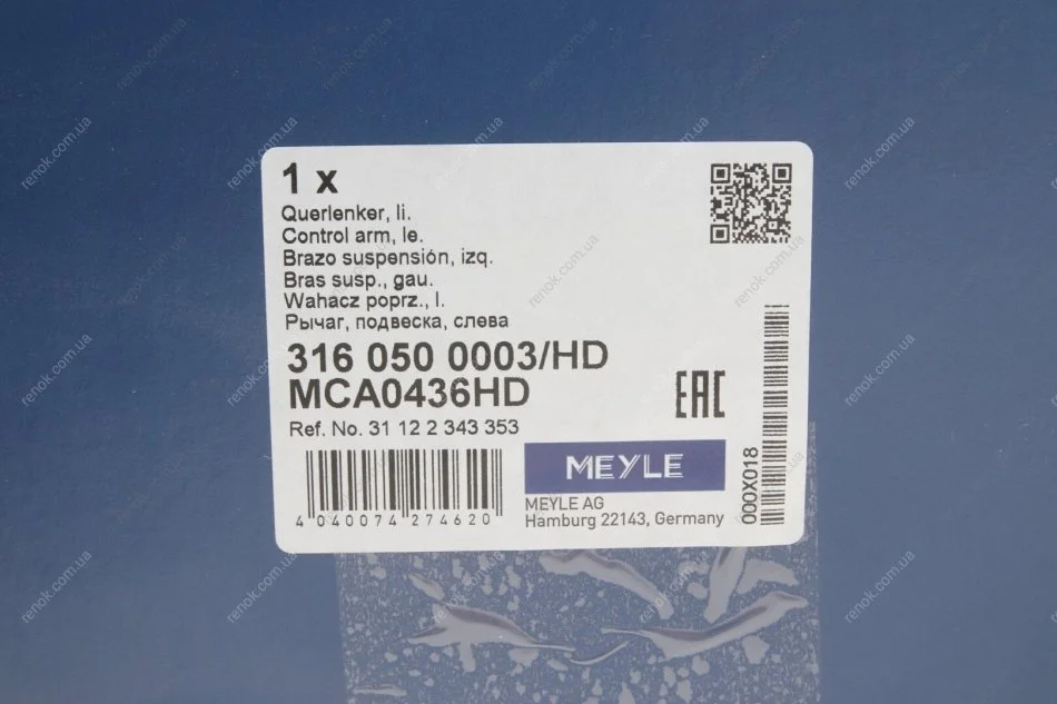 Важіль підвіски (передній/знизу) (L) BMW 3 (E46) 98- MEYLE 316 050 0003/HD (31121094465, 31121096985, 31121752717)
