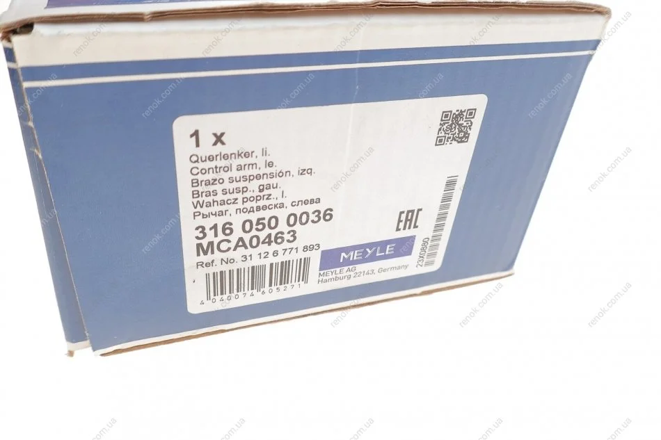 Важіль підвіски (передній/знизу) (L) BMW X5 (E70) 3.0-5.0i 06-13 MEYLE 316 050 0036 (31126771893)