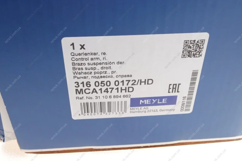 Важіль підвіски (передній/спереду/знизу) (R) BMW 3 (G20/G80)/4 (G22/G82) 19- MEYLE 316 050 0172/HD