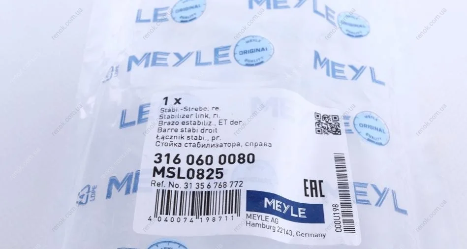 Тяга стабілізатора (переднього) (R) BMW 3 (E90/E91/E92)/X1 (E84) 05-15 MEYLE 316 060 0080 (31356768772)