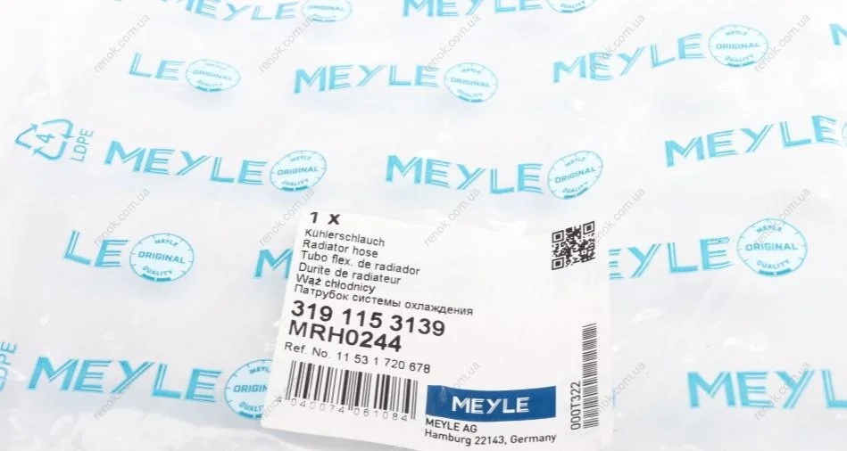 Патрубок радіатора (верхній) BMW 5 (E34) 2.0/2.5 87-96 MEYLE 319 115 3139 (11531720678, 11532483283)