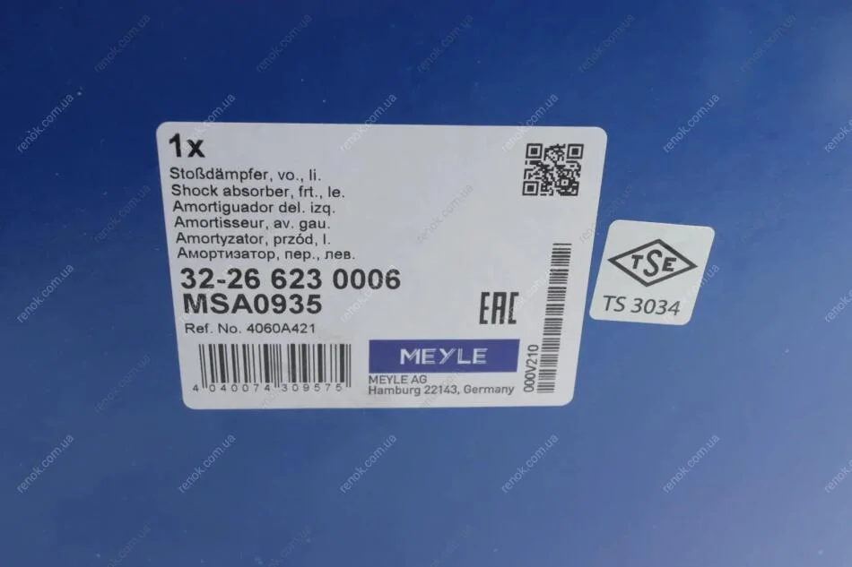 Амортизатор (передній) (L) Mitsubishi Outlander 2.0/2.2Di-D/2.4/3.0GT 12- MEYLE 32-26 623 0006