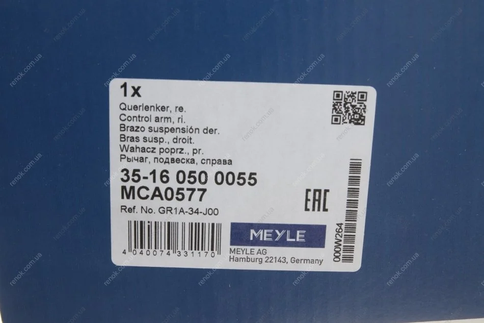 Важіль підвіски (передній/знизу/ззаду) (R) Mazda 6 1.8-2.3 02-07 MEYLE 35-16 050 0055 (gj6a34j00c, gj6a34j00d, gj6a34j00b)