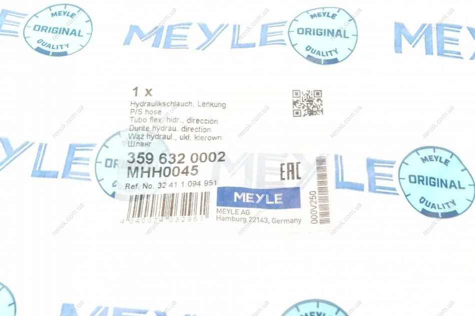 Шланг гідропідсилювача BMW 3 (E46) 97-05 (M52/M54) MEYLE 359 632 0002 (32411094951)