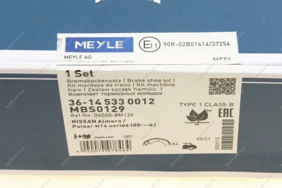 Колодки гальмівні (задні) Nissan Almera II 00- (барабанні) (203x36) MEYLE 36-14 533 0012 (440608M126, D40608M126)