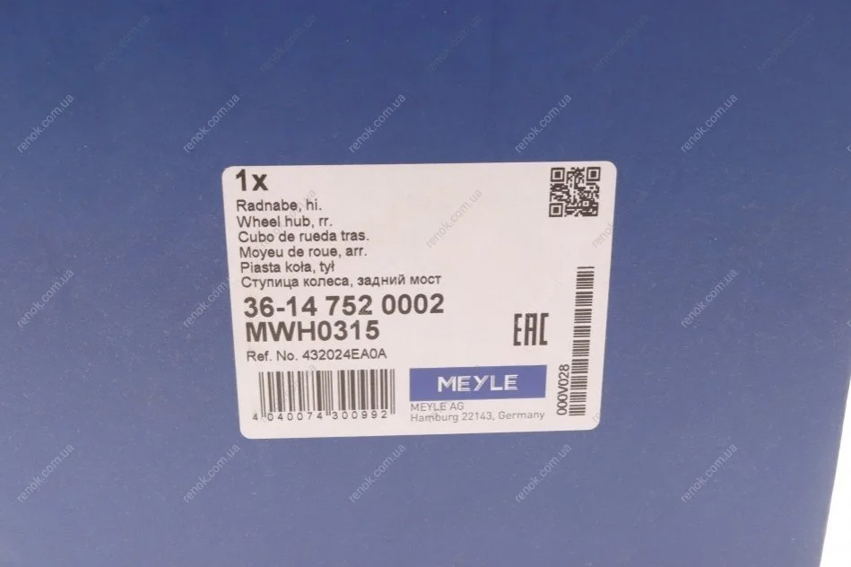 Підшипник маточини (задньої) Renault Kadjar/Nissan Qashqai 13- MEYLE 36-14 752 0002 (432024EA0A)