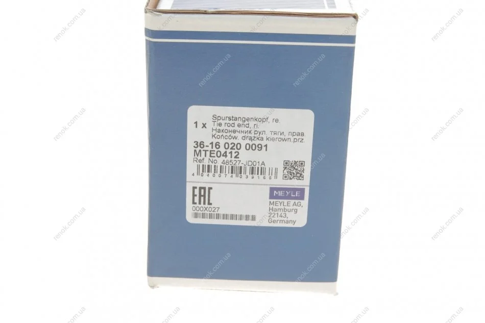 Наконечник тяги рульової (R) Nissan Qashqai/ X-Trail 07-13/ Renault Koleos 08- MEYLE 36-16 020 0091 (d8520JY00A, 485200604R, D8520JG00A)