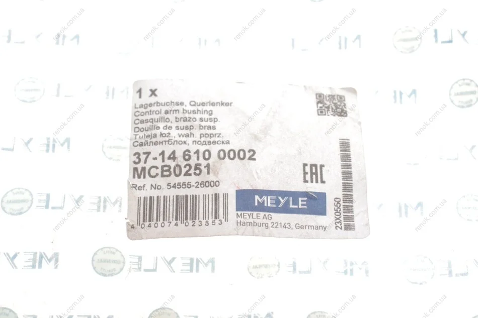 Сайлентблок важеля (переднього/знизу/ззаду) Hyundai Santa Fe I 01-06 MEYLE 37-14 610 0002 (5455526000)