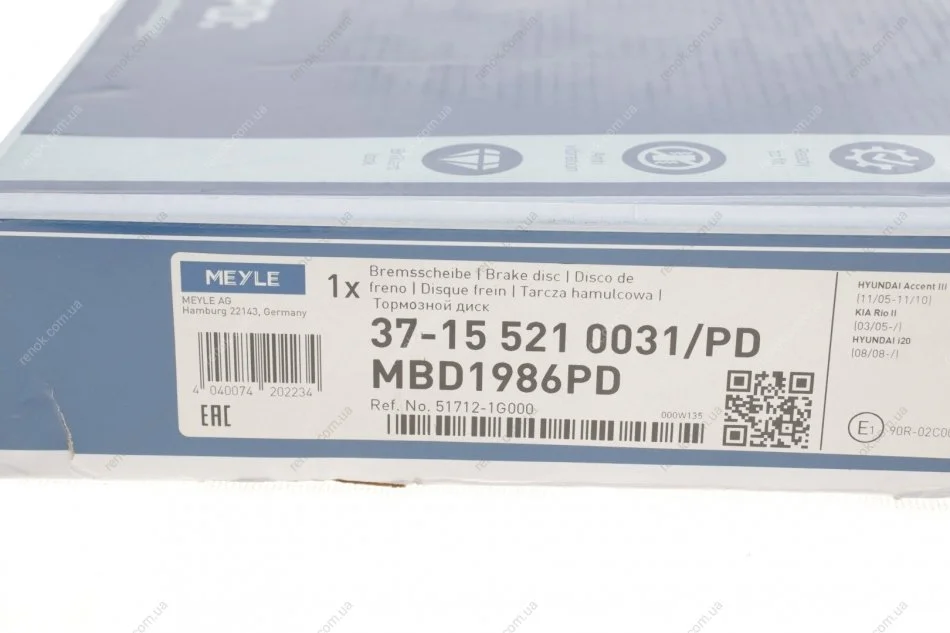 Диск гальмівний MEYLE 37-15 521 0031/PD (517121G000)
