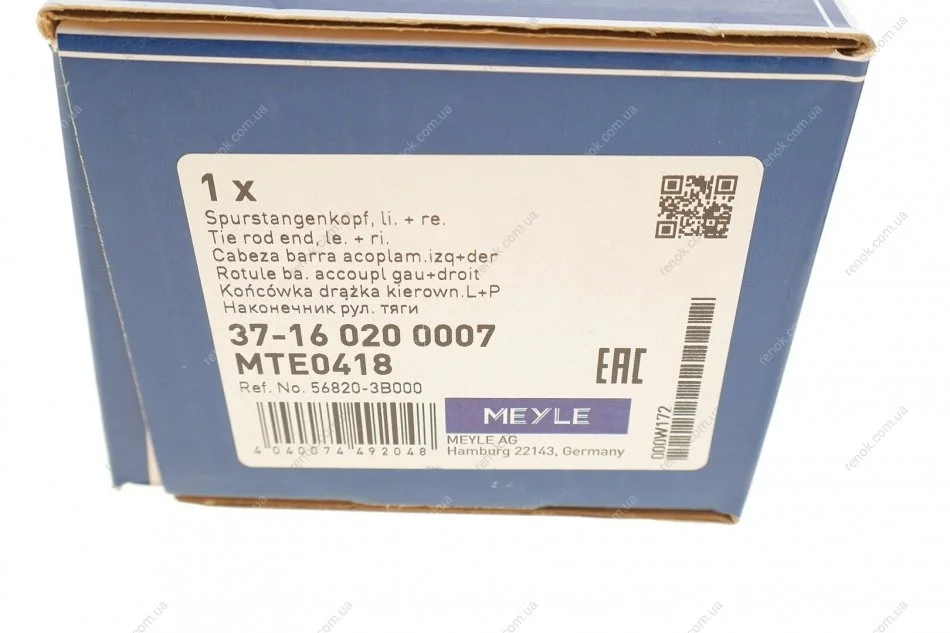 Наконечник тяги рульової Hyundai Santa Fe I 01-06/Getz 02-10/Mitsubishi Pajero Pinin 99-07 (L=73mm) MEYLE 37-16 020 0007 (568201C080, 568203B000)