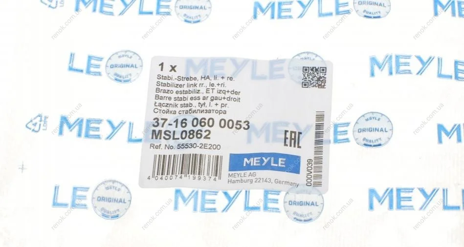Тяга стабілізатора (заднього) Hyundai Tucson/Kia Sportage 2.0CRDi/2.0-2.7 04- (L=220mm) MEYLE 37-16 060 0053 (555302E100, 555302E000, 555302E200)