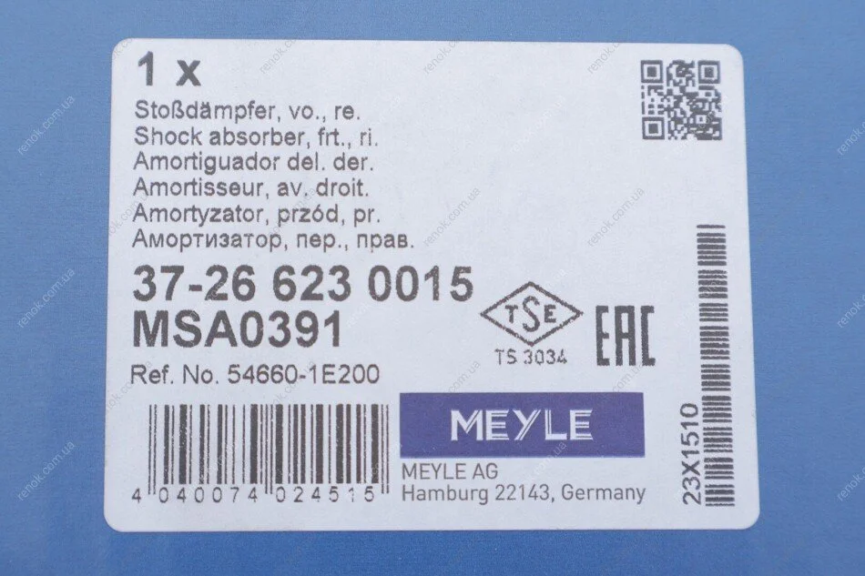 Амортизатор (передній) Hyundai Accent/Kia Rio 05-11 (R) MEYLE 37-26 623 0015 (546601E100, 546601E200, 546601G200)