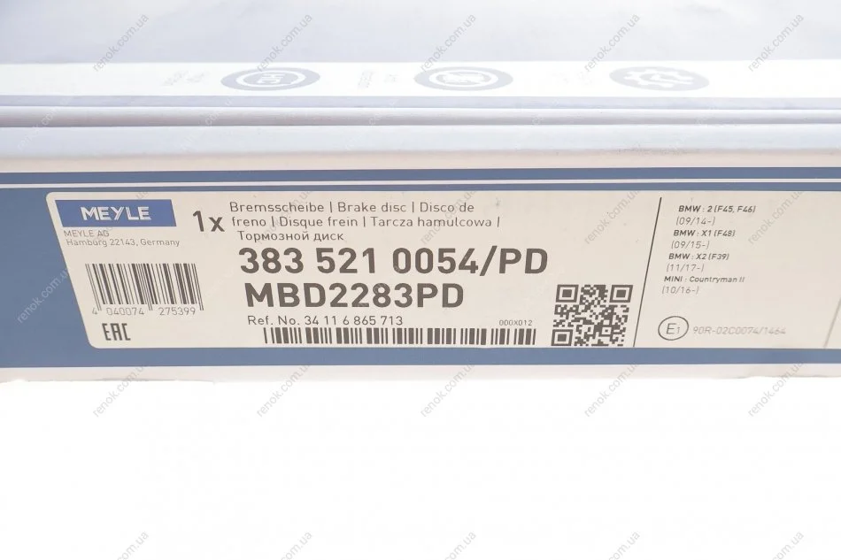 Диск гальмівний MEYLE 383 521 0054/PD (34116865713)
